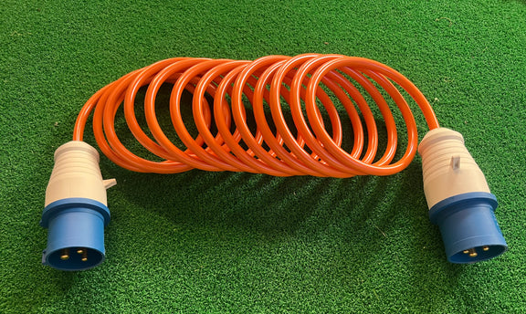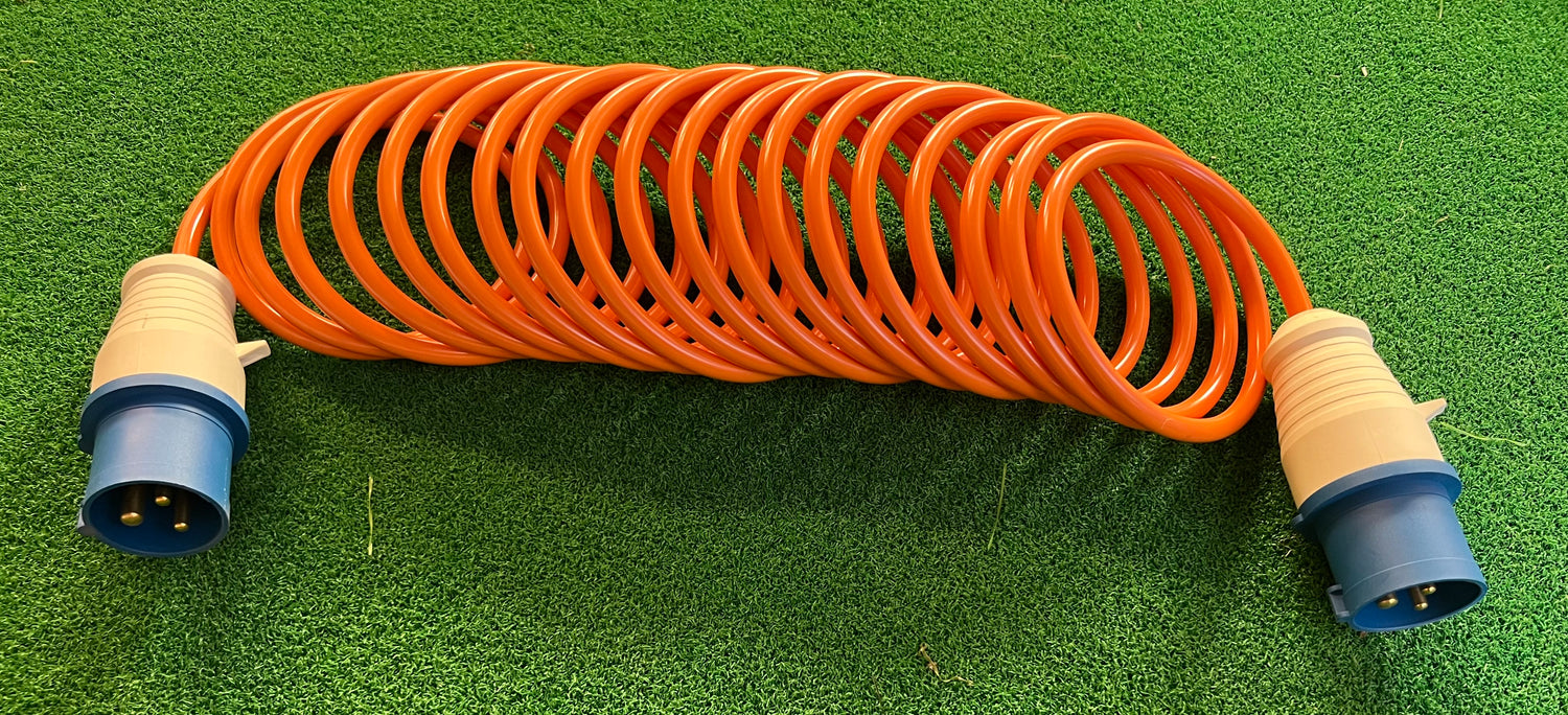 This highly durable Caravan and Campervan 240v Mains retractable Hook Up Lead by ARC is the perfect solution for your electrical needs. With a 16amp CEE plug and 2P+E weather and splash proof connector style a push-on termination type for easy use. The lead is made from high-quality, double insulated Hytrel material and comes in lengths of 5m, 7.5m or 10m (16 feet, 25 feet or 33 feet), making it ideal for long-distance connections. The orange-coloured coiled lead has two male IP44 connectors and is designed with a blue connector style.
