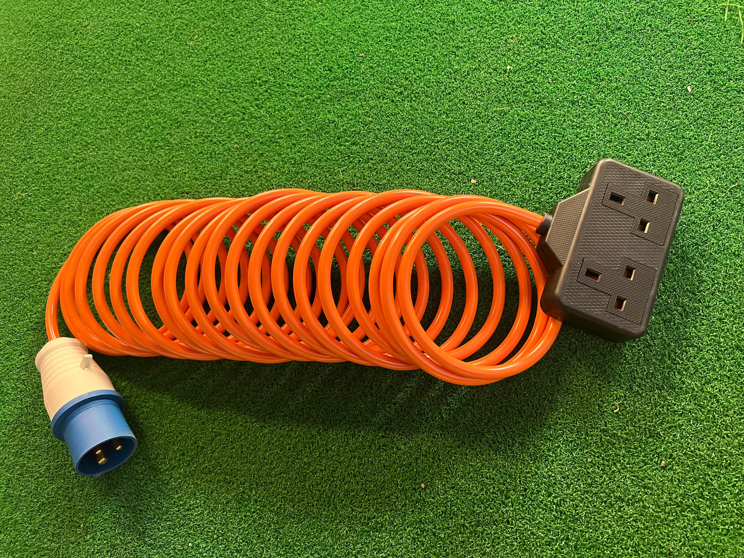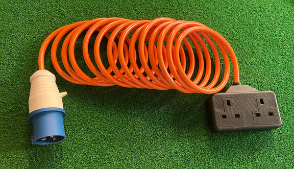 Camping and Caravan Mains Hook Up Lead, with IP44 connector and 2-way socket.