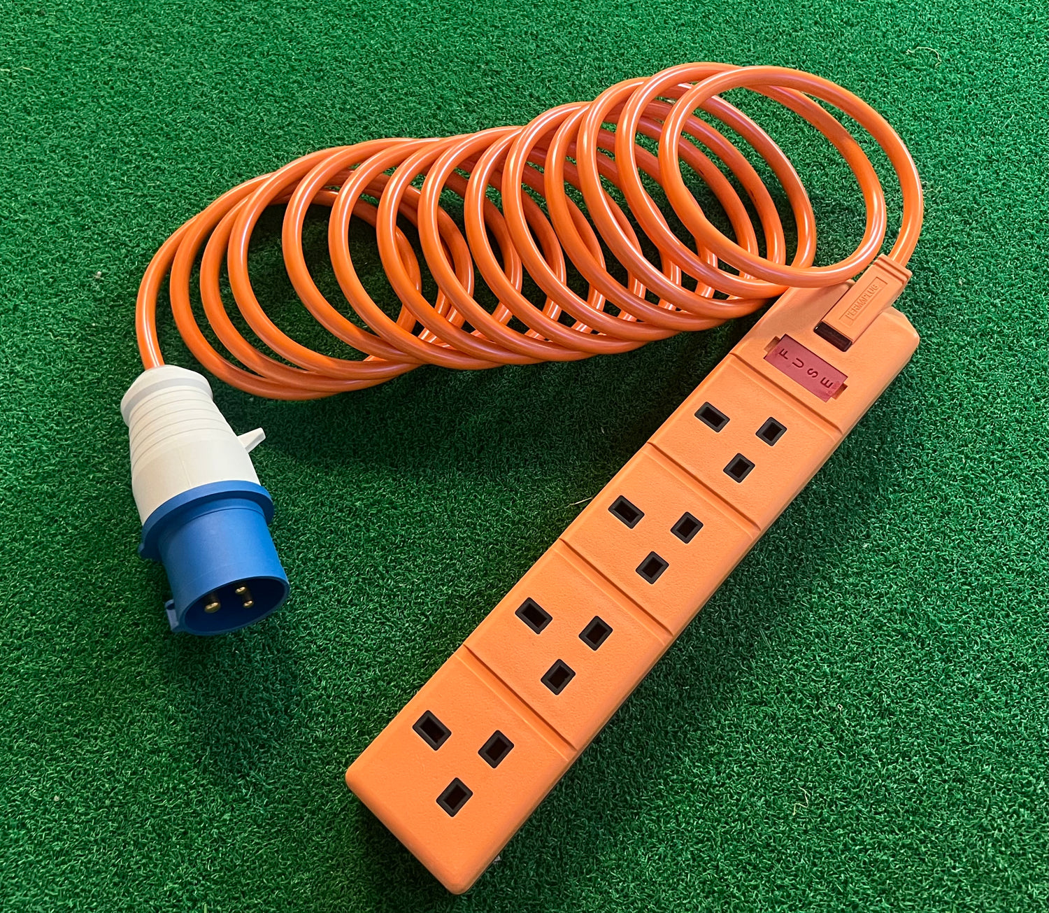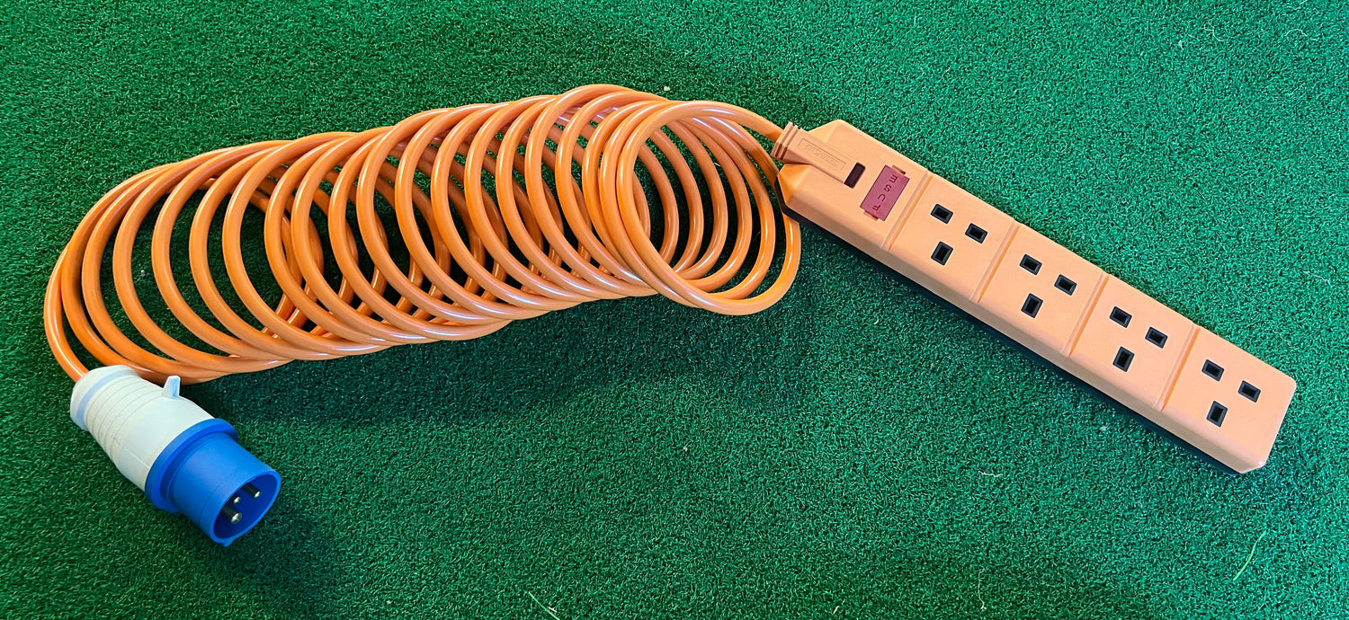 Camping and Caravan Mains Hook Up Lead, with IP44 connector and 4-way socket